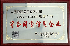 集團(tuán)榮獲“2022-2023年度廈門(mén)市守合同重信用企業(yè)”榮譽(yù)稱(chēng)號(hào)
