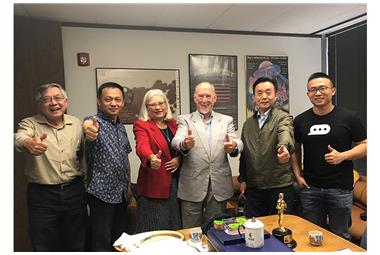 1月28日,美國(guó)皇佳商業(yè)銀行董事長(zhǎng)田詒鴻率高管蒞臨大洲集團(tuán)進(jìn)行考察交流。集團(tuán)董事長(zhǎng)陳鐵銘熱情接待了遠(yuǎn)道而來(lái)的田董一行。
